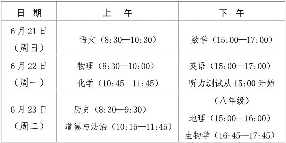 根據通知,2026年中考省級統一考試安排在6月21日—23日舉行(具體科目考試時間安排見上表)。(記者 蔣豐蔓)